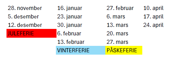 Datoer for Tweens fredagsklubb høsten 2025 /vår 2026: